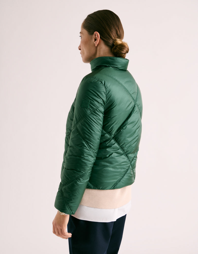 Boldness and practicality meet in this short puffer jacket , a piece that redefines urban comfort. Its water-repellent fabric defies the elements, keeping you dry in style. Large diamond quilting sculpts a contemporary silhouette, while two piped pockets fuse elegance and functionality.