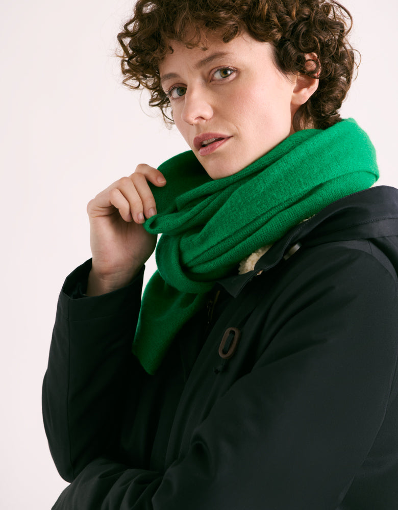 The essential reinvented: our pure cashmere scarf combines simplicity and refinement. Its generous length envelops you in softness, while its vibrant hues infuse a touch of audacity into your look.