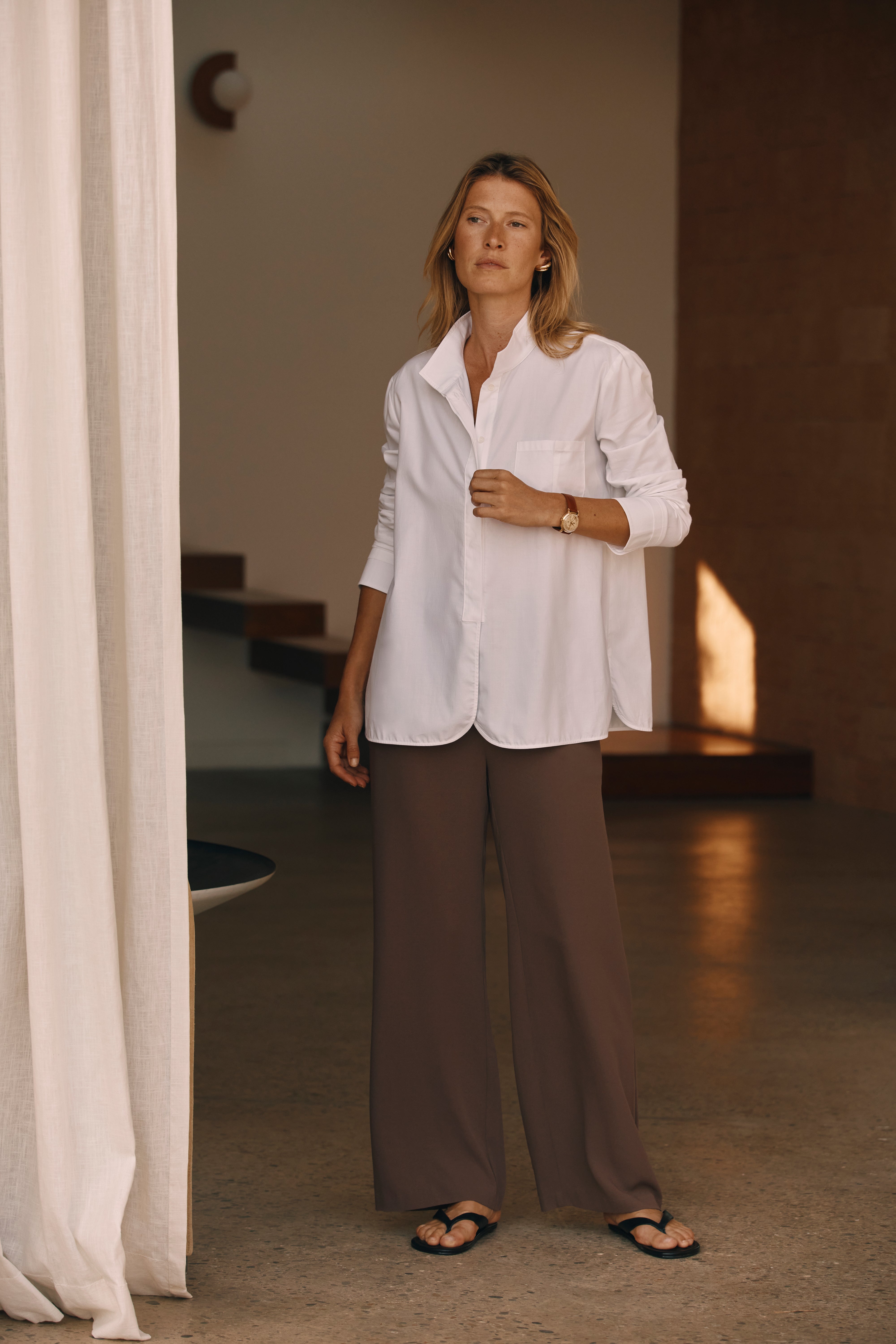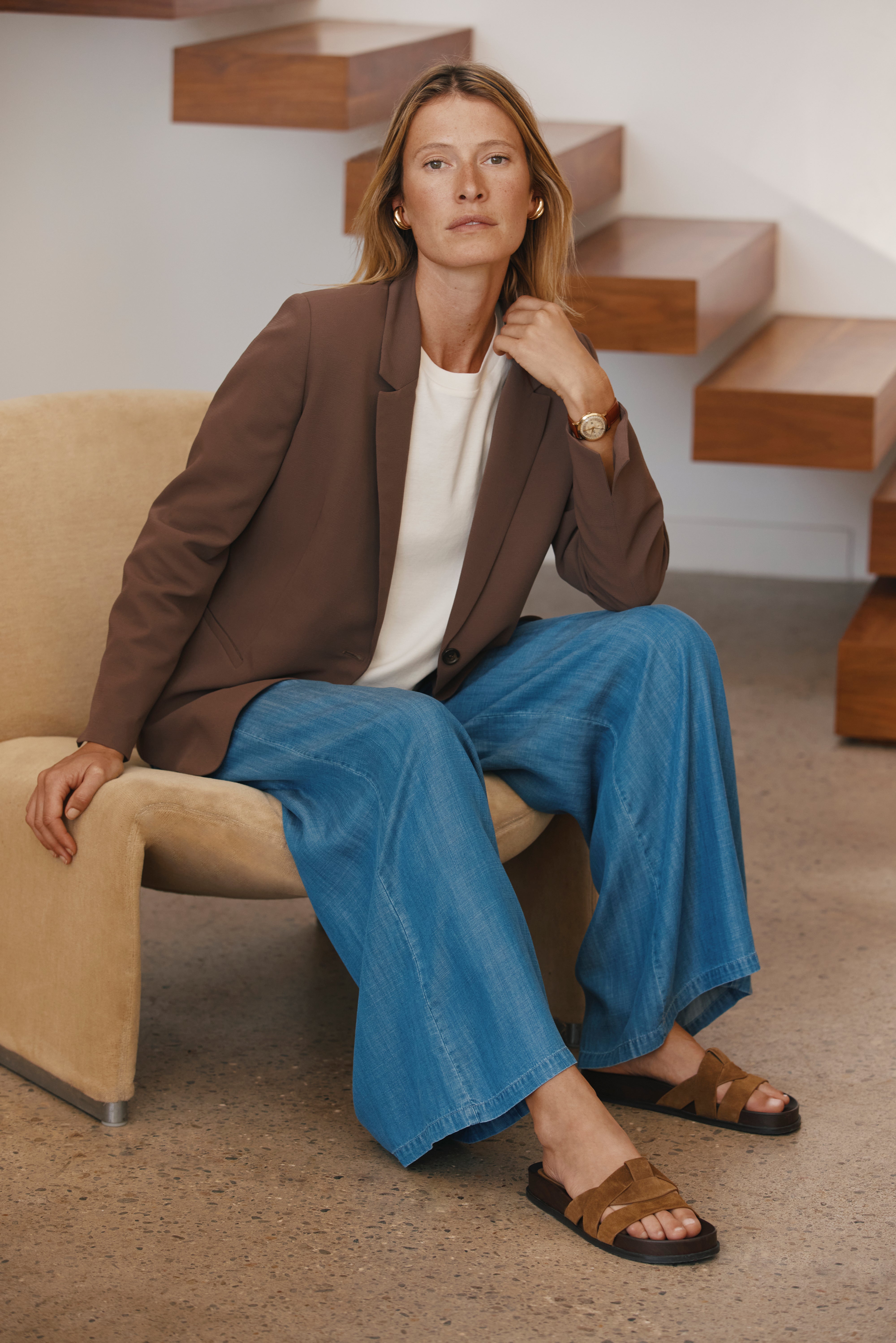 Elle a ce chic des premiers déjeuners en terrasse, où l’air se réchauffe et la peau reste encore claire. Rien n’est figé : son allure respire, son style s’étire dans la journée. Elle cultive un art de la détente élégante, où chaque pièce raconte la même chose : le confort est une esthétique en soi.