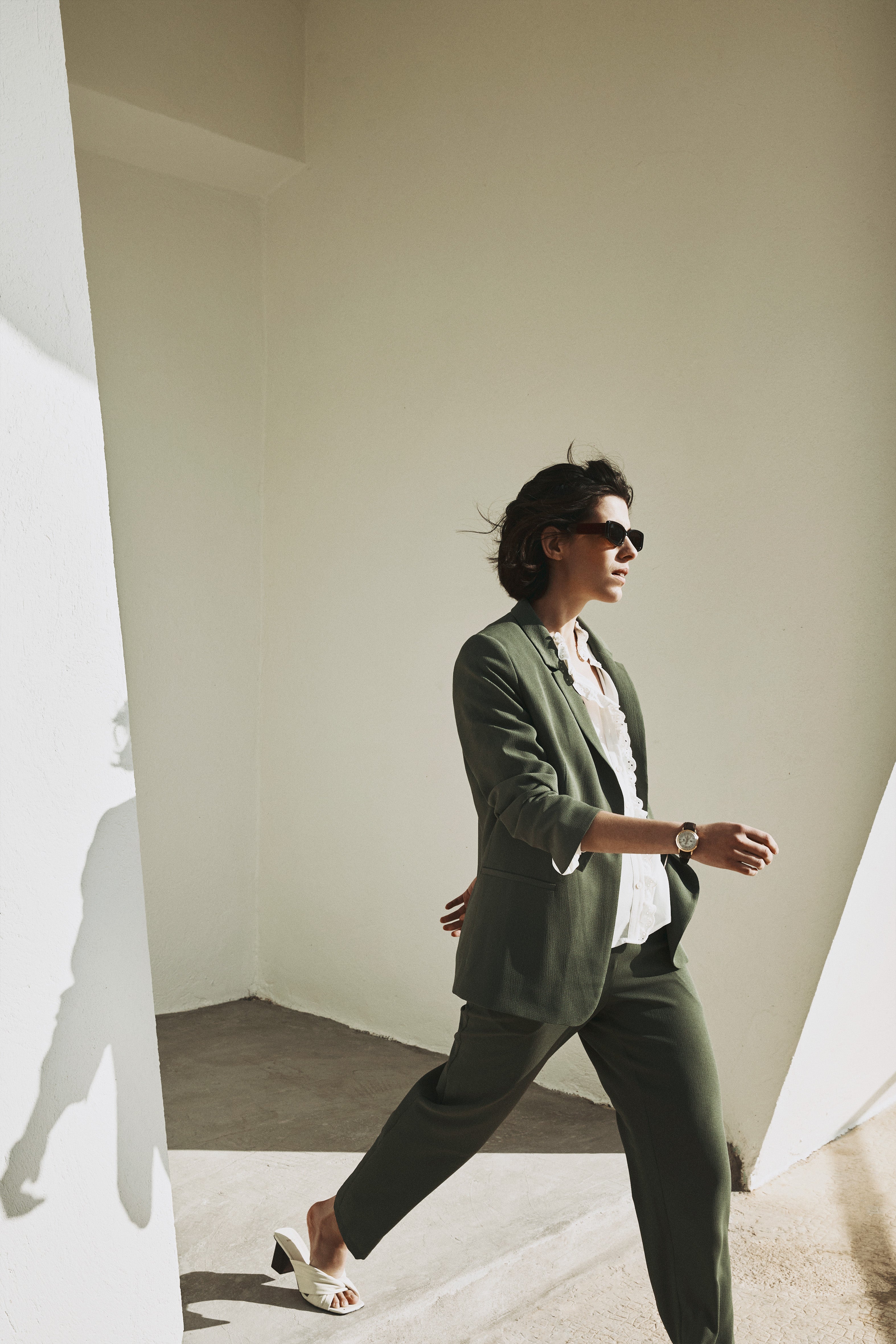 Des coloris doux et naturels, la douceur est de mise avec des mailles tricotées en France, fabriquées avec des matières d'exception. Les nuances de beige sont relevées par du noir en détail pour souligner la silhouette, pour des silhouettes modernes et intemporelles.