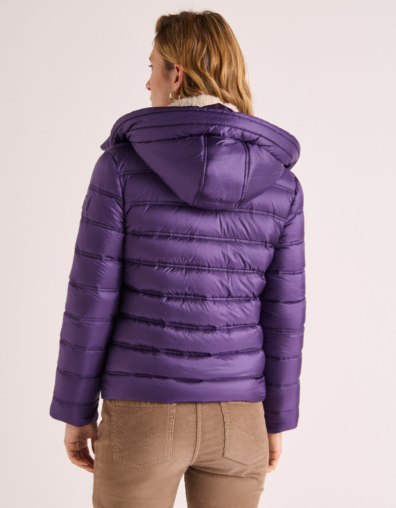 Un éclair violet dans la grisaille hivernale. Cette doudoune courte attire le regard et réchauffe le corps avec son rembourrage en duvet léger mais efficace. Deux poches latérales accueillent vos mains gelées ou vos essentiels du quotidien. Quand le vent se lève, la capuche ajustable par lien de serrage devient votre meilleure alliée. Le zip frontal glisse en un éclair, vous parant pour affronter la journée.