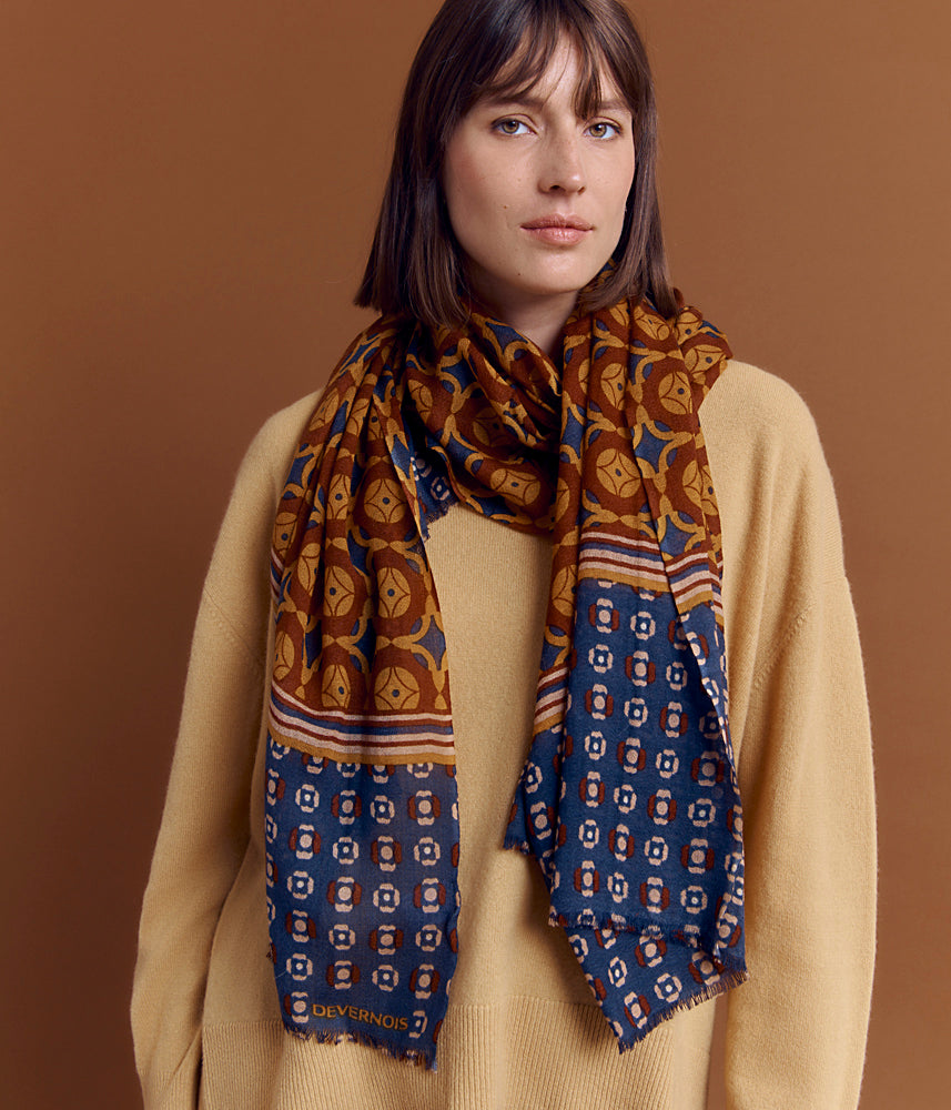 Écharpe imprimée en laine Jeu d'imprimés géométriques