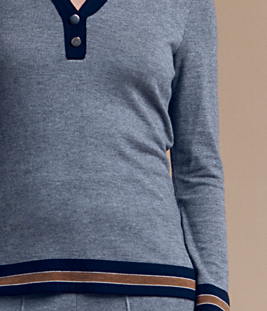 Pull col polo en laine Mérinos et viscose Tricoté en France