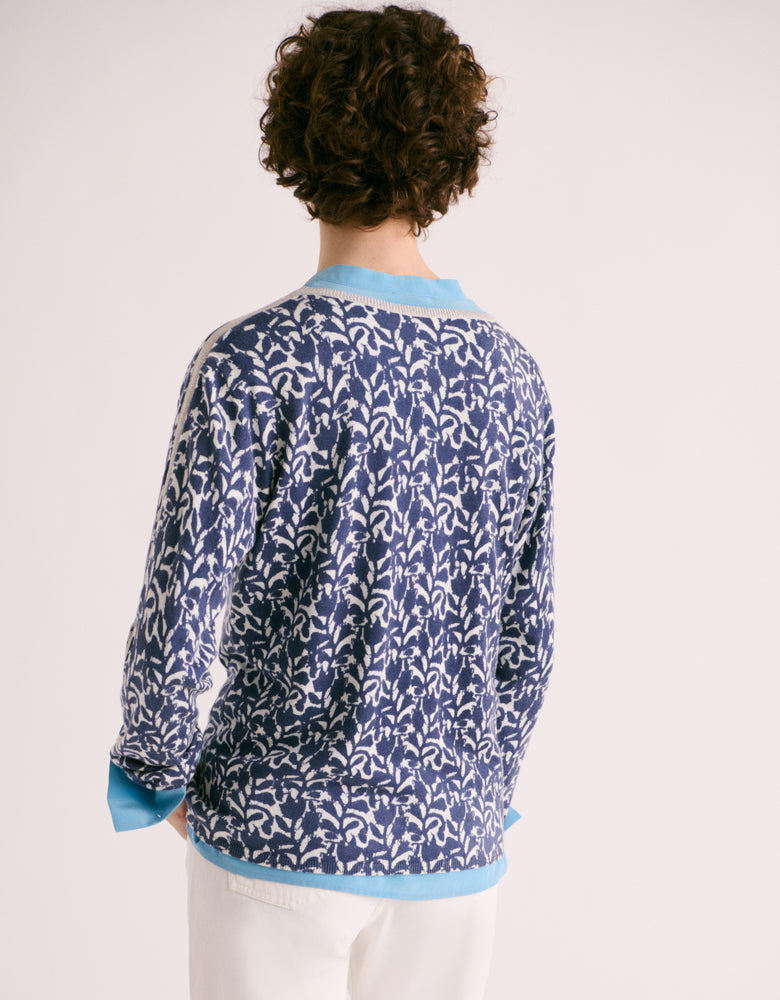 Son encolure en V rehaussée de fils lurex apporte une touche de lumière au niveau du visage, lueur prolongée jusque sur les manches, détail qui n'en est pas un.