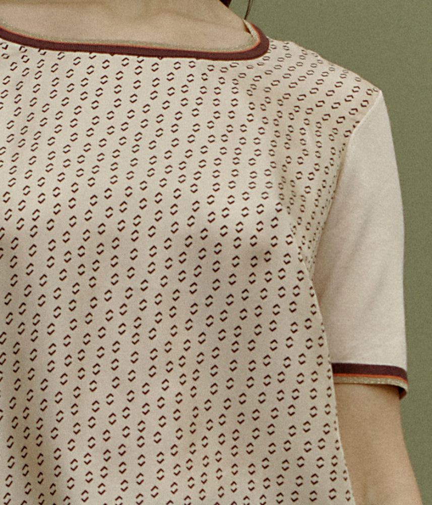 - Avant du pull en twill de soie imprimé, dos en viscose